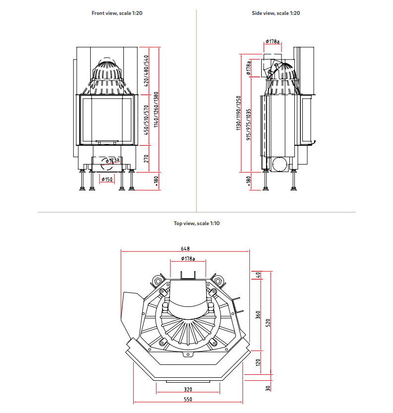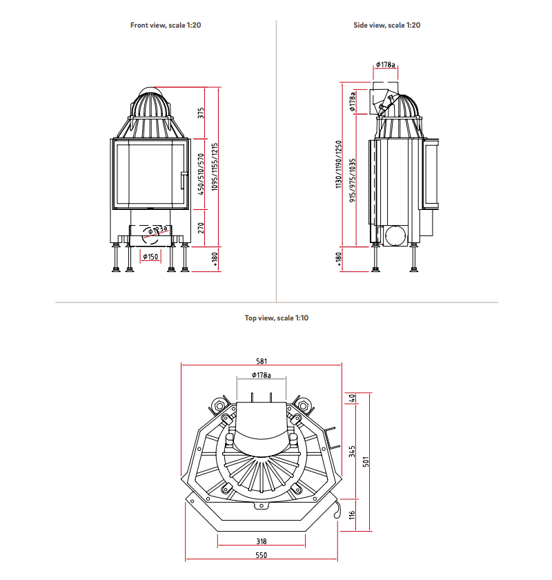 Lungime recomandată coș fum: 1,7 m