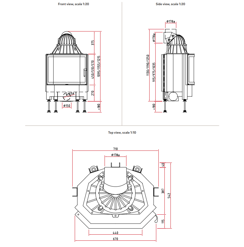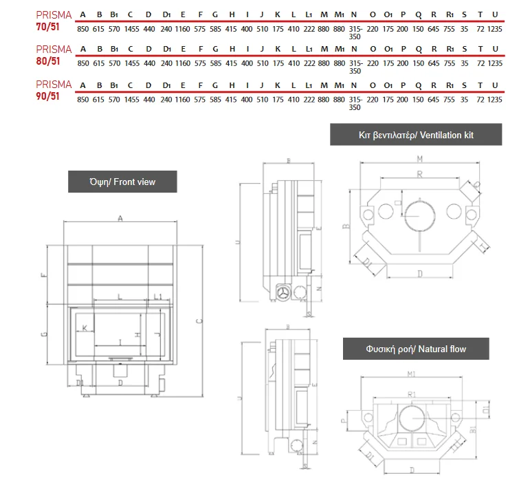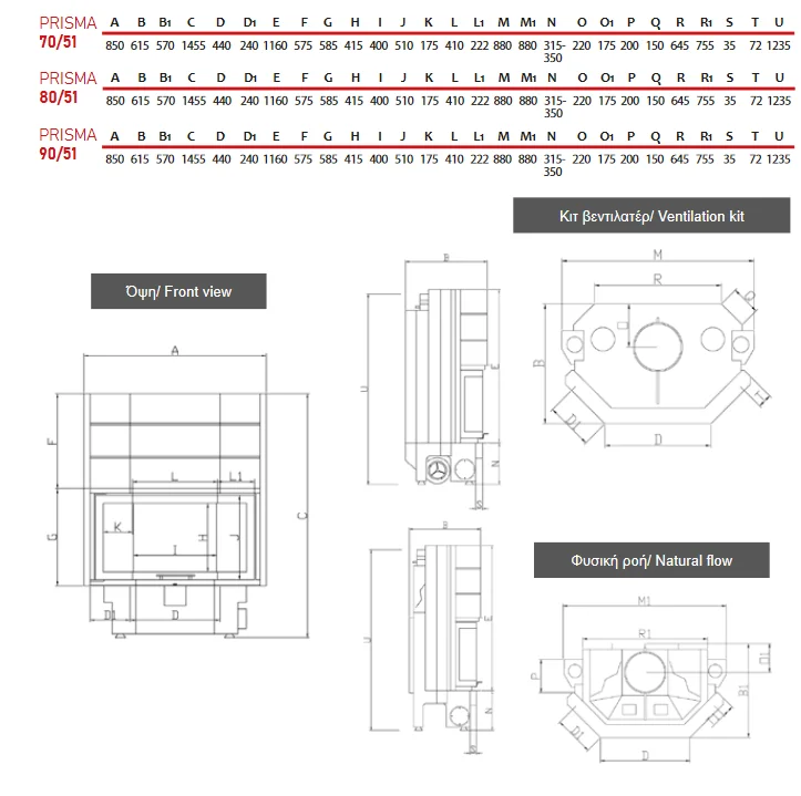 Distribuție căldură: 35% radiație / 65% convecție
