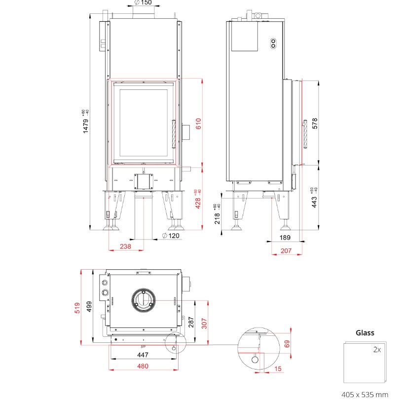 • Diametrul coșului de fum 150 mm