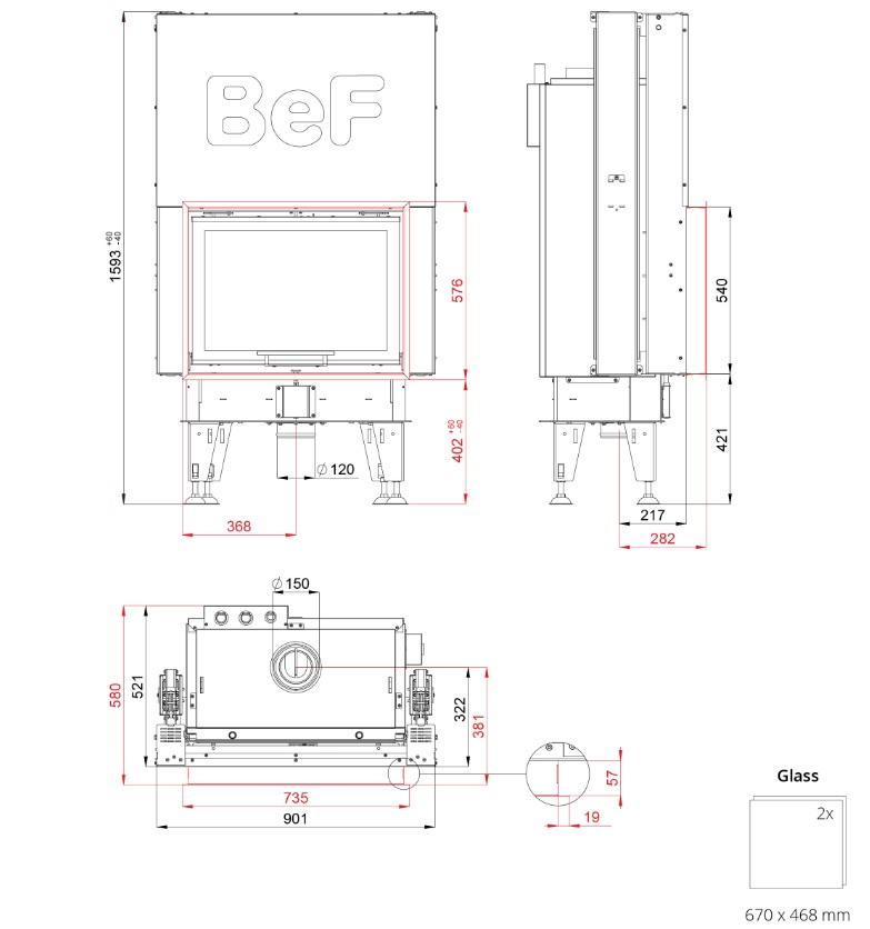 Datorita focarului fabricat din materialul special cu acumulare de caldura Carcon, care a fost dezvoltat special pentru BeF HOM, se atinge o eficienta si o puritate ridicata arderii, plus o vedere confortabila a flacarilor.