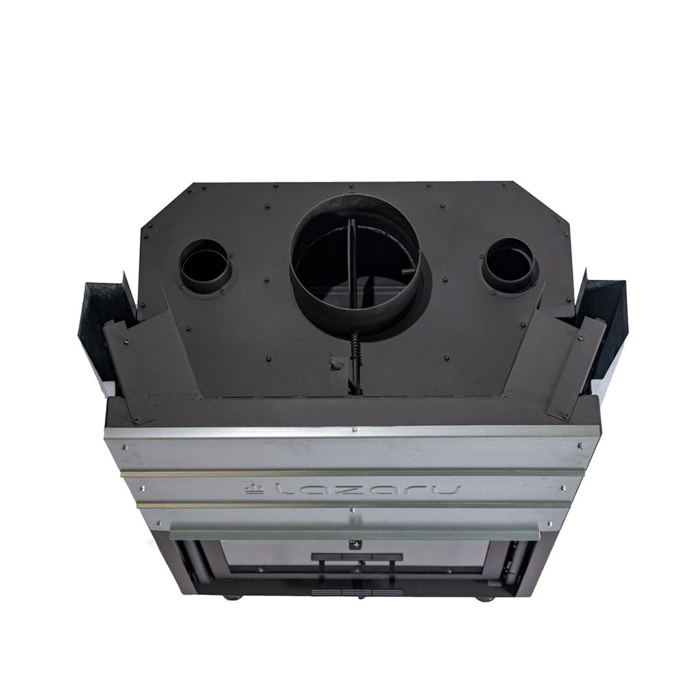 ● LAZARU 90/51 suprafata metalica termica mare ● recipient de capacitate mare pentru preincalzirea aerului ca urmare au o mare autonomie in preincalzirea oxigenului ● accepta o cantitate mare de aer pe care o transforma in caldura, rezultand o curatare mai buna a sticlei din fantele perdelei de aer ● LAZARU 90/51 au schimbătoare de căldură mari pentru a transforma aerul rece în aer cald ● au două derivații de evacuare + clapeta totală de trei ● acces la toate părțile mecanice și electrice ale focarului prin deschideri de vizitare pentru orice deteriorări care pot apărea de-a lungul anilor și pentru a efectua operațiuni fără a fi necesar strică orice decor care a fost făcut în afara vatrăi.