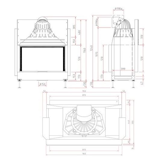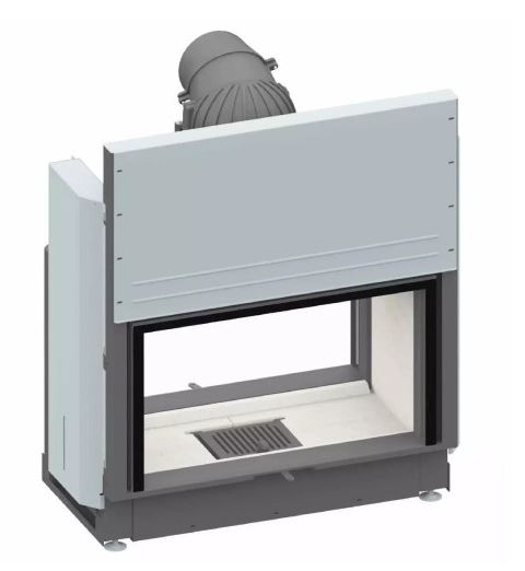 Acest șemineu cu sistem de ușă glisantă și inclinabilă oferă o vizibilitate excelentă a focului și o eficiență termică mare.