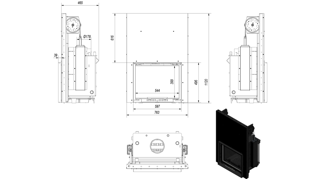 In plus fata de modelul standard M120, termofocarul este prevazut cu usa glisanta pe verticala pentru o alimentare usoara cu lemne. Incalzeste cu succes suprafete mari de pana la 120 mp, in regim propriu sau in paralel cu alte surse de caldura.